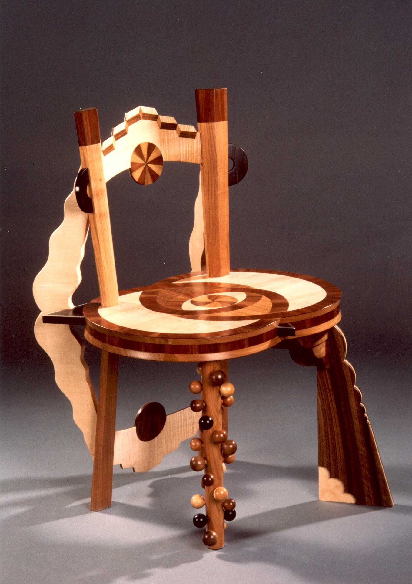 Chair, maple, cherry, walnut, prune, Macassar ebony and tin 56 x 60 x 85 cm