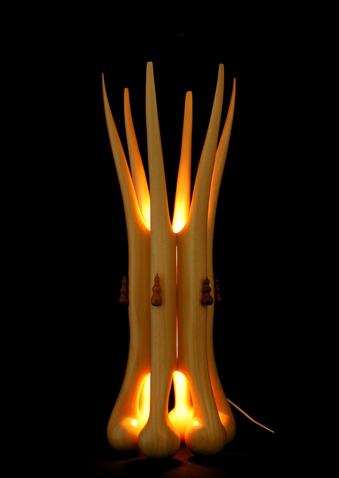 Table lamp, samba, rosewood, yew wood. 40 x 40 x 107 cm
